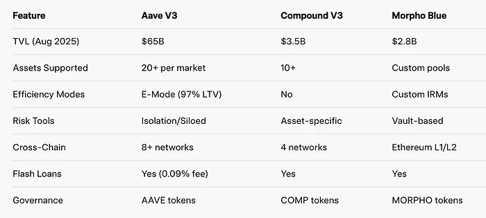 Aave excels at multi-chain and risk tools; Compound excels at simplicity; Morpho excels at customization.