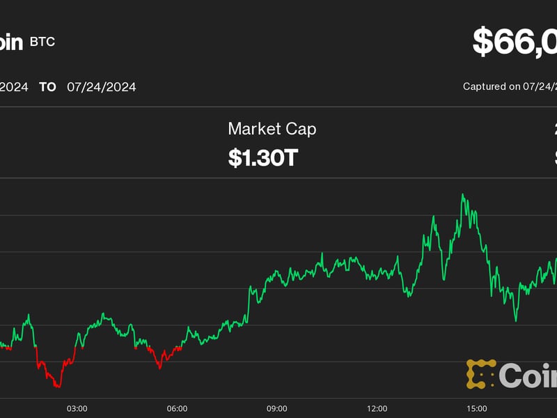 The Nasdaq and S&P 500 on Wednesday each suffered their worst declines since late 2022, but the price of bitcoin (BTC) mostly held up, remaining around the $66,000 level where it was a day earlier.