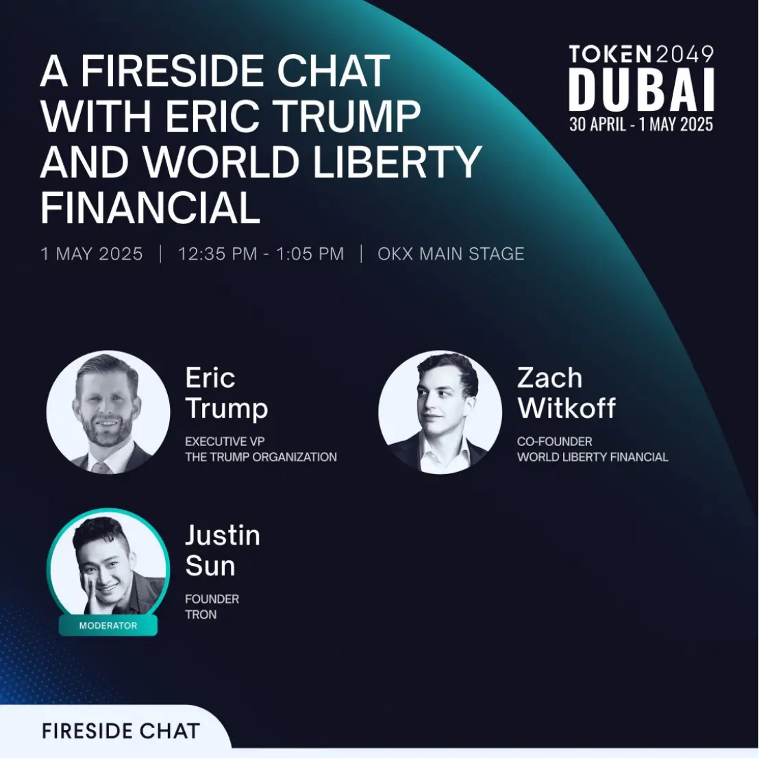 波场TRON创始人孙宇晨将出席5月1日在迪拜举办的Token2049峰会上,并与特朗普次子埃里克·特朗普(Eric Trump)进行一场备受瞩目的炉边对话,出席对话的人士还包括特朗普家族支持的去中心化金融项目WLFI(World Liberty Financial)的联合创始人Zach Witkoff。