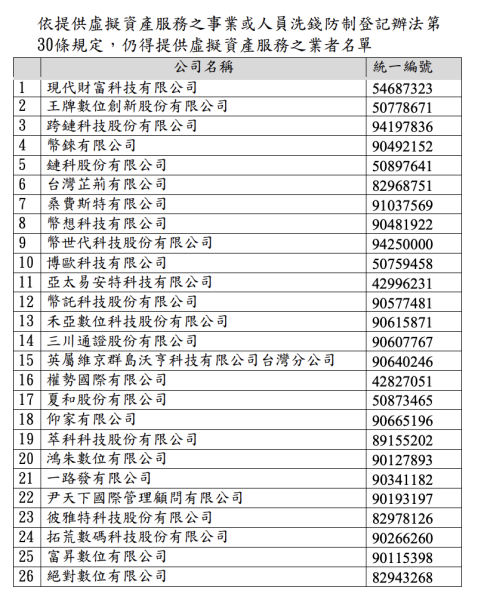 刑事局特別提醒,除了金融監督管理委員會證券期貨局官網公告的 26 家合法業者外,其餘未依法登記的個人幣商和工作室,皆屬非法經營。民眾在進行虛擬貨幣投資前,應先確認交易平台是否完成合法登記,避免墜入詐騙陷阱。