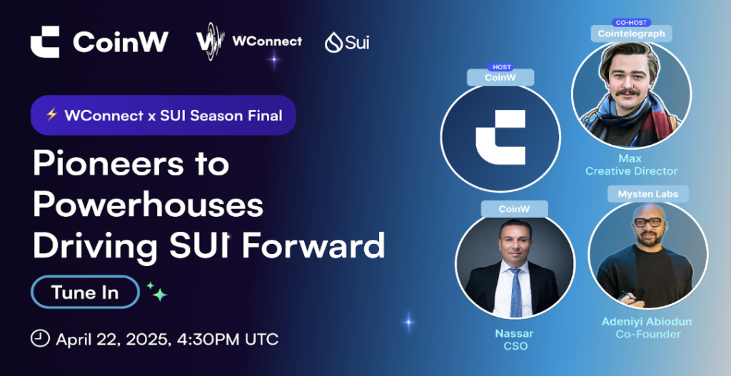 2025年4月22日,全球領先的加密資產交易平台CoinW攜手Sui Foundation成功舉辦Twitter Space專題對話「Sui生態新勢力:從先鋒到引領」,正式為為期一個月的WConnect x Sui Season系列活動劃上圓滿句點。