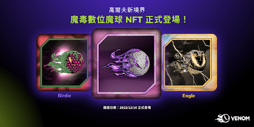 Venom Golf的「數位魔球NFT」計劃預計於12月中旬發售限量250份,分為初階版Birdie NFT持有者可享有10小時的高爾夫球擊球點數,並獲得Venom Golf聯名高爾夫球乙盒;高階版Eagle NFT持有者可享有50小時的高爾夫球擊球點數,並獲得Venom Golf聯名高爾夫球乙盒、生日當天擊球2小時免費等超值賦能! 此外Venom Golf NFT在最初購買時皆為盲盒形式,解盲後持有者將有機率獲得變異版Birdie Plus和Eagle Plus特殊卡,兩款特殊卡都將享有「終身提供免費擊球點數」的超級賦能!跳脫傳統會員卡玩法,Venom Golf將用全新創意玩轉你對NFT的看法!