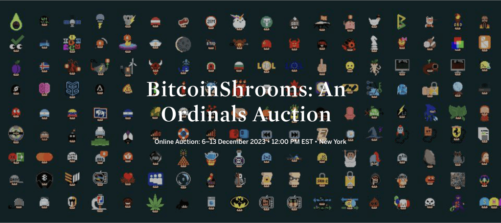 幾天前,蘇富比首次拍賣了近期加密社群最熱衷的比特幣 NFT,也就是「銘文」,競標日期為 12 月 6 日至 13 日,並包括 BitcoinShrooms 系列作品的 3 幅圖像:S、Sovereign Individual 以及 BIP39 Seed。