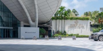 位於馬來西亞森林城市濱海酒店的網路學校校門,由飯店改建而成