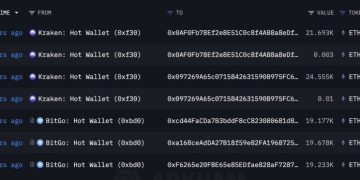 據鏈上分析平台 Lookonchain 引述 Arkham 數據指出,Bitmine 在過去 10 個小時內透過七筆交易,在三個新地址中收到了 104,336 枚 ETH (約 4.17 億美元),來源為 Kraken 與 BitGo 的兩個錢包。不過 BitMine 目前尚未就此轉帳發表正式聲明。