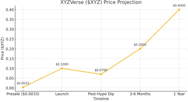 XYZVerse ($XYZ) 是迷因幣,其在預售階段設定了從 $0.0001 上漲到 $0.1 的價格目標,吸引了市場目光。迄今為止,它已完成一半的預售進度,籌集了超過 1,400 萬美元,目前 $XYZ 代幣的價格為 $0.003333。在預售的下一個第 13 階段,$XYZ 代幣的價值將進一步上漲至 $0.005,這意味著早期參與者有機會獲得潛在的折扣。預售結束後,$XYZ 將規劃在主要中心化和去中心化交易所上市。團隊尚未披露具體細節,但已預告將有一系列重大發布。