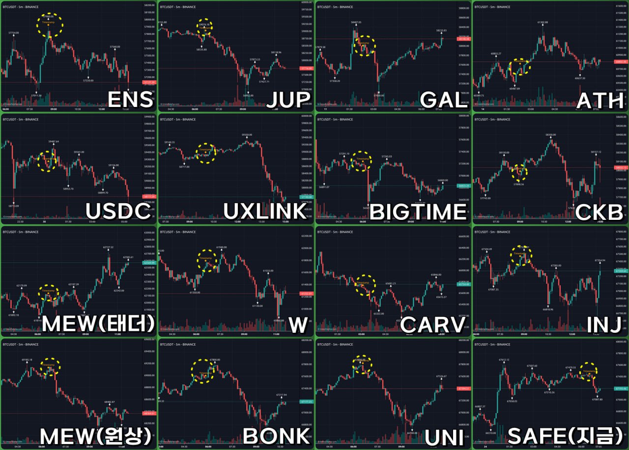 Upbit 近 16 次listing後比特幣價格變化。來源:minchoisfuture